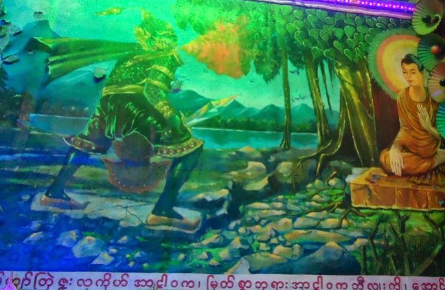 အာဠာဝကကေတာ႔ ေဂၚဇီလာဘက္က ဆင္းသက္တဲ႔ဘီလူးလိုု႕ ကြ်န္တာ္ယူဆတယ္။ ကမာဝက္ မြန္ေက်ာင္းမွာဆြဲထားတဲ႔ ပန္းခ်ီကားအရ ဘုုရားကိုု မီးနဲ႕လွမ္းမႈတ္ေနတာ ကြ်န္ေတာ္ေတြ႕ခဲ႔တယ္။ မာဖလာပတ္ထားတာကလည္း ကိုရီးယားမင္းသားက်ေနတာပဲ။ မာဖလာမဟုုတ္ဘူး ဝတ္ရံုုဆိုုေတာ႔လည္း စူပါမင္းတုုိ႕၊ ဘတ္မန္းတုုိ႕ထက္ ေစာတယ္။ ဘီလူးေတြက အမႈန္႕ၾကိတ္ပစ္မယ္လုုိ႕ ျခိမ္းေျခာက္တတ္လုုိ႕႕ ေဒဝယကၡေဆးေၾကာ္ျငာမွာ အဖုုအက်ိတ္ေတြ ေပါင္ဒါဗူးထဲထည္႕လုုိ႕ရေအာင္ အမႈန္႕ျဖစ္သြားေစရမယ္လုုိ႕ ေၾကာ္ျငာတာၾကားဖူးတယ္။